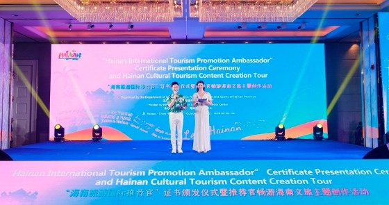 The Hainan International Tourism Promotion Ambassador Certificate Presentation Ceremony, held in Haikou on October 11, saw newly appointed tourism promotion ambassadors receive their appointment certificates, and current outstanding ambassadors awarded for their efforts to promote Hainan. The initiative, launched by the provincial Department of Tourism, Culture, Radio, Television and Sport, aims to encourage content creators from around the globe to share the tropical charm and dynamic openness of the Hainan Free Trade Port with the combined millions of followers.