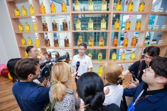 "The unmanned production line is impressive!" exclaimed Ayoub Bechrouri, a reporter for China Arab TV. In the product display area, a dazzling array of oils lined the shelves. Reporters enthusiastically examined ingredient lists and exchanged cooking tips. "From a single seed, a long industry chain can be developed. It's truly remarkable," said Bechrouri as he examined the products.