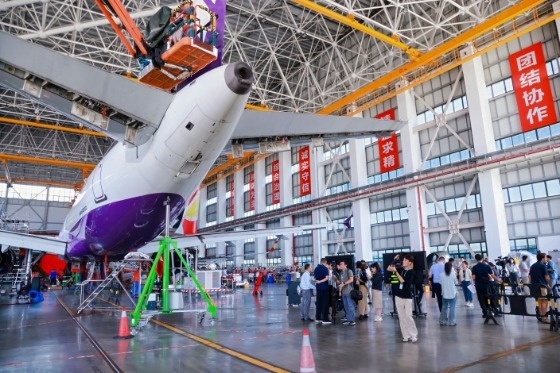 Media visit the Hainan Free Trade Port One-Stop Aircraft Maintenance Base.
