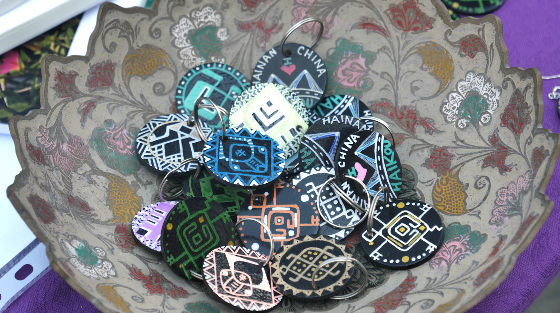 Nicki Johnson has been living in Hainan for 17 years, and her first encounter with Li brocade was a gift from a friend. Due to her work, Nicki has had the chance to visit several Li villages to learn more about Li brocade techniques and Li culture. She said that when she sees a Li brocade pattern, she is very excited to take pictures of it with her phone, then study it later at home, and ask people who might know about it to tell her more about the meaning. When people ask about the handicrafts she designs, Nicki is thrilled to share the stories behind the different Li brocade patterns that inspire them. She hopes that more people will learn about and become interested in the culture, history, and beauty of Li Brocade.