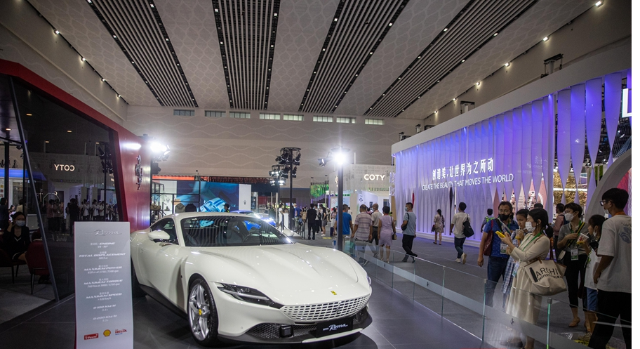 A Ferrari sports car on display at the 2nd CICPE. [Photo / Liu Yang]