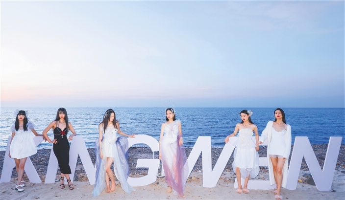 Models present the latest fashion creations of Kingwen at the seaside during Fashion Week at the second CICPE in Haikou, Hainan Province, on July 28, 2022. (Photo: Sanya Tourism Promotion Board)