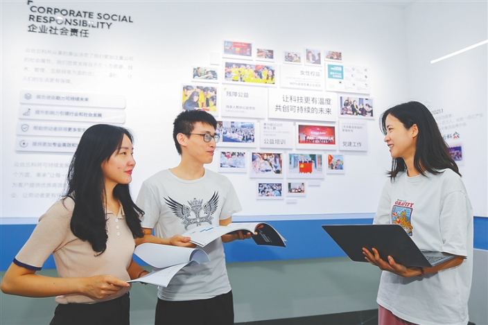 Staff in the Resort Software Community, one of the eleven key industrial parks in the Hainan Free Trade Port. (Photo / Wang Jiangjiu)