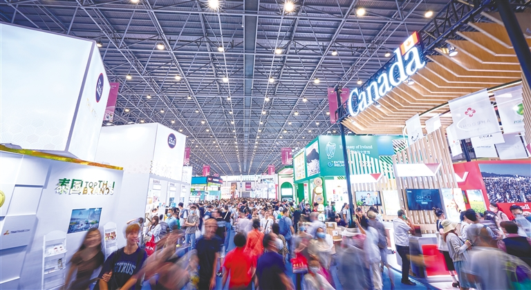 The Hainan International Convention and Exhibition Center was packed with visitors on April 14, 2023, the 1st public open day of the 3rd CICPE.[Photo: Feng Shuo/Hainan Daily]