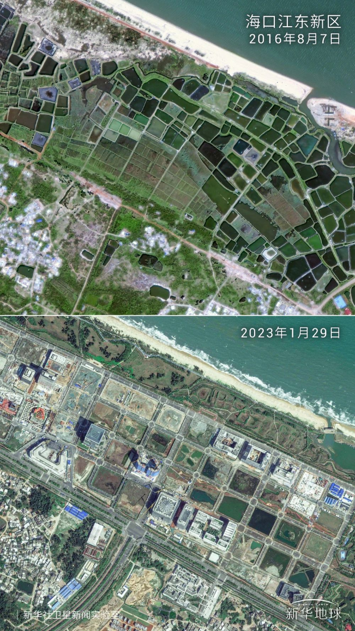 Satellite photos of the Jiangdong New Area taken on Aug. 7, 2016 (upper) and Jan. 29, 2023 (lower). (Photo: Xinhua)