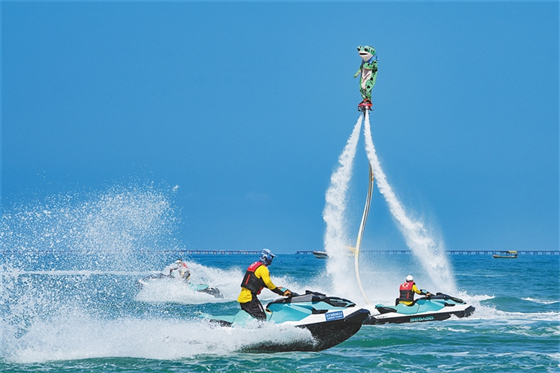 There's a wealth of exciting watersport activities for tourists to enjoy at Sanya's Tianya Haijiao Scenic Area. (Photo: Wang Chenglong / Hainan Daily)