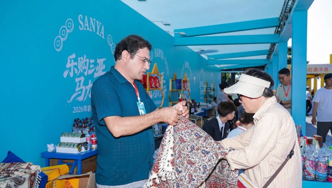 Last weekend, Dadonghai Square in Sanya was filled with the sights, sounds, and festive spirit of the Chinese New Year. Farzaneh, a vendor from Iran, stood behind his small Spring Festival stall, warmly welcoming visitors to the row of international booths.