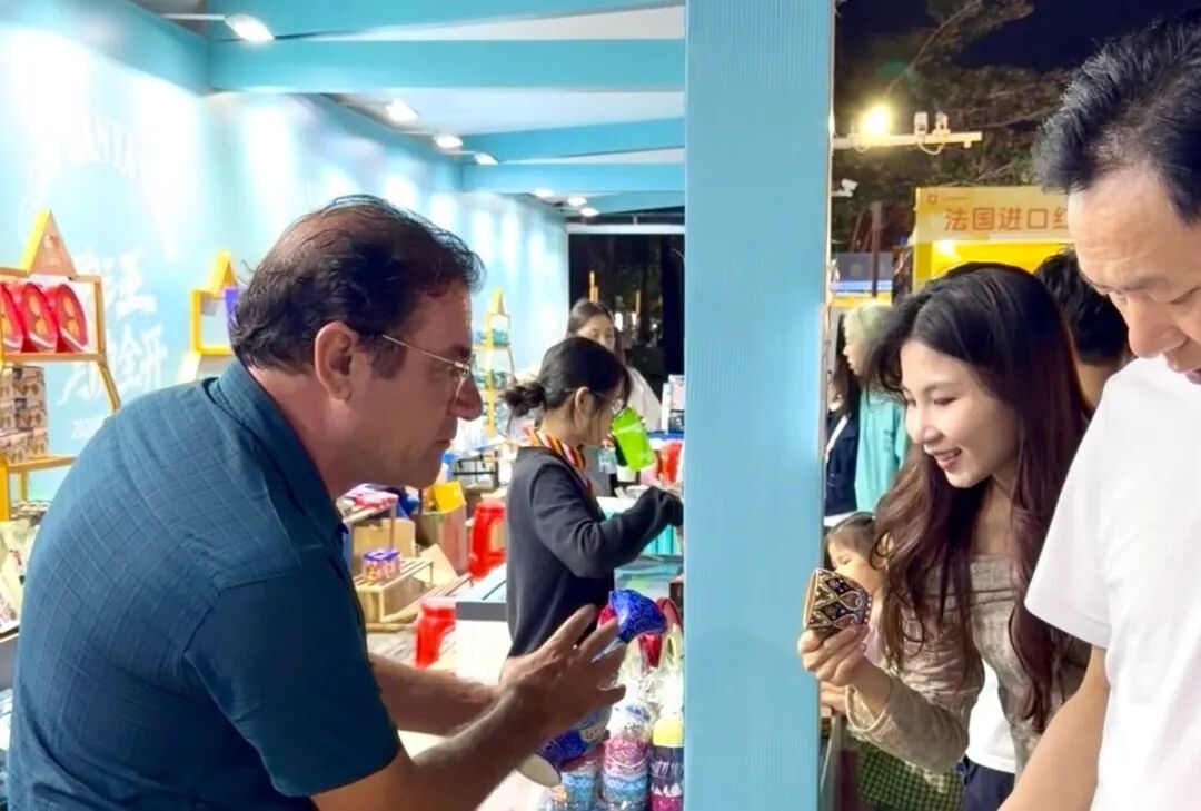 The excellent flavors and beautiful handicrafts quickly won over visitors. Ms. Zhang, from Beijing, sampled an Iranian cookie and immediately picked up several packs to take with her. Giving a thumbs-up, she said with a smile, "They're really good. It’s so interesting to be able to buy specialty products from different countries all in one place."