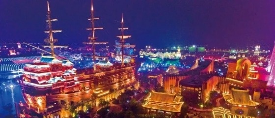 Night view at the Changying Wonderland Park in Haikou.