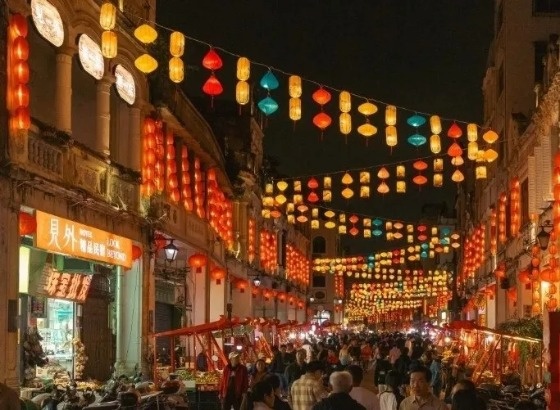 Festive lanterns light up Haikou’s Historic Qilou Street.