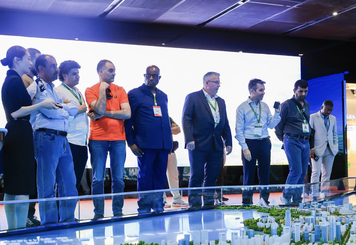 Representatives of foreign economic and trade institutions conduct an industrial tour and exchange activities in Haikou's Jiangdong New Area.