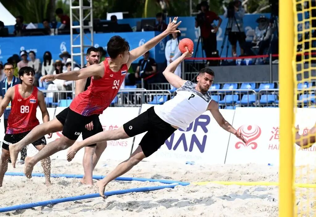 Snapshot of a beach handball match (Photo by Yang Guanyu, Xinhua News)