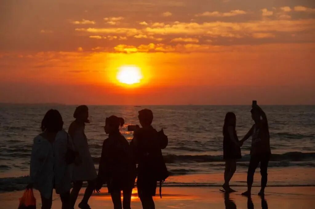 Vacationers and sunset in Sanya (Photo by Zhang Xinchao, Xinhua News)