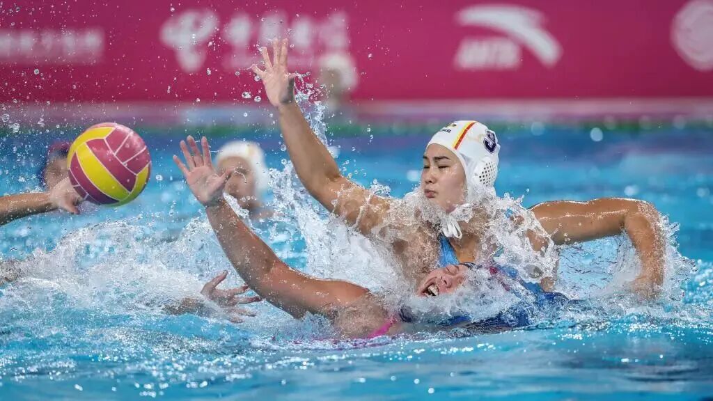 Snapshot of a water polo match (Photo by Pan Yulong, Xinhua News)