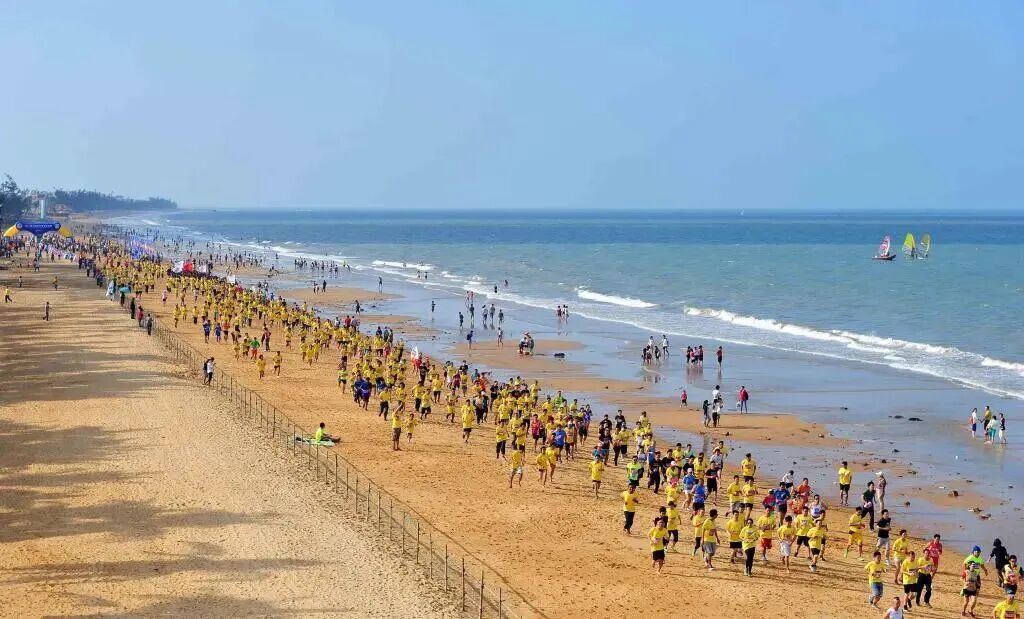 Snapshot of a beach marathon. (Photo by Guo Cheng, Xinhua News)