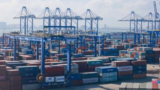 As the first rays of morning sunlight beam down onto the Yangpu International Container Terminal, they illuminate an already bustling scene of gleaming steel.