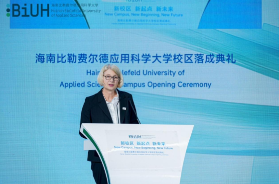 The ceremony was declared open by Prof. Dr. Ingeborg Schramm-Wölk, President of Hochschule Bielefeld University of Applied Sciences and Arts (HSBI) and President of Hainan Bielefeld University of Applied Sciences. In her speech, she pointed out that the completion of BiUH is not only an important achievement in Sino-German educational cooperation but also a vivid practice of education transcending national boundaries and connecting the world. The new campus is not just an expansion of teaching space but also a key carrier transforming Sino-German educational concepts from "vision" into "reality." The university will rely on the German "work-integrated" education model, closely aligning with the industrial development direction of the Hainan Free Trade Port, to provide students with "Work-integrated" education that combines international perspectives and local practice.