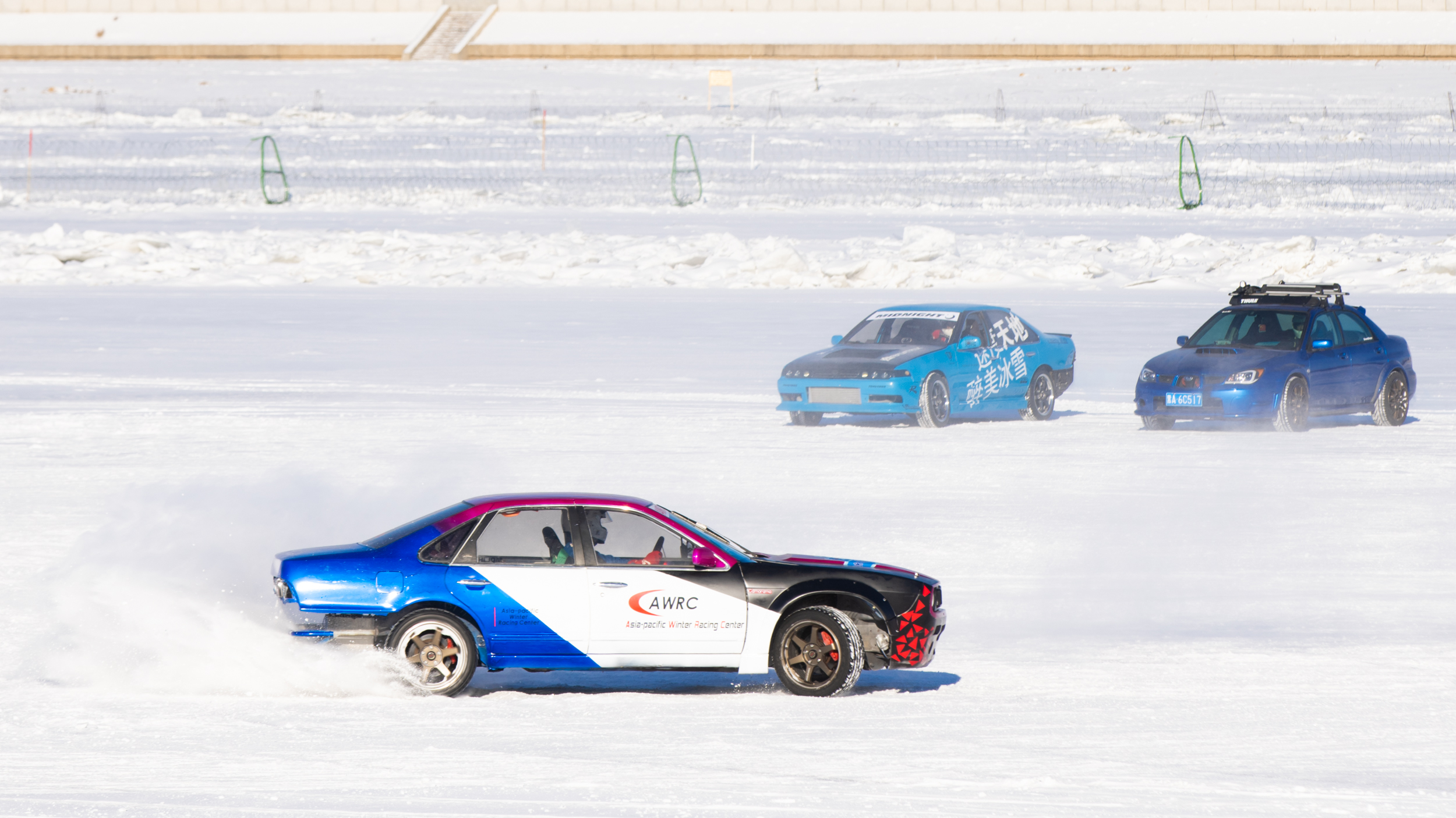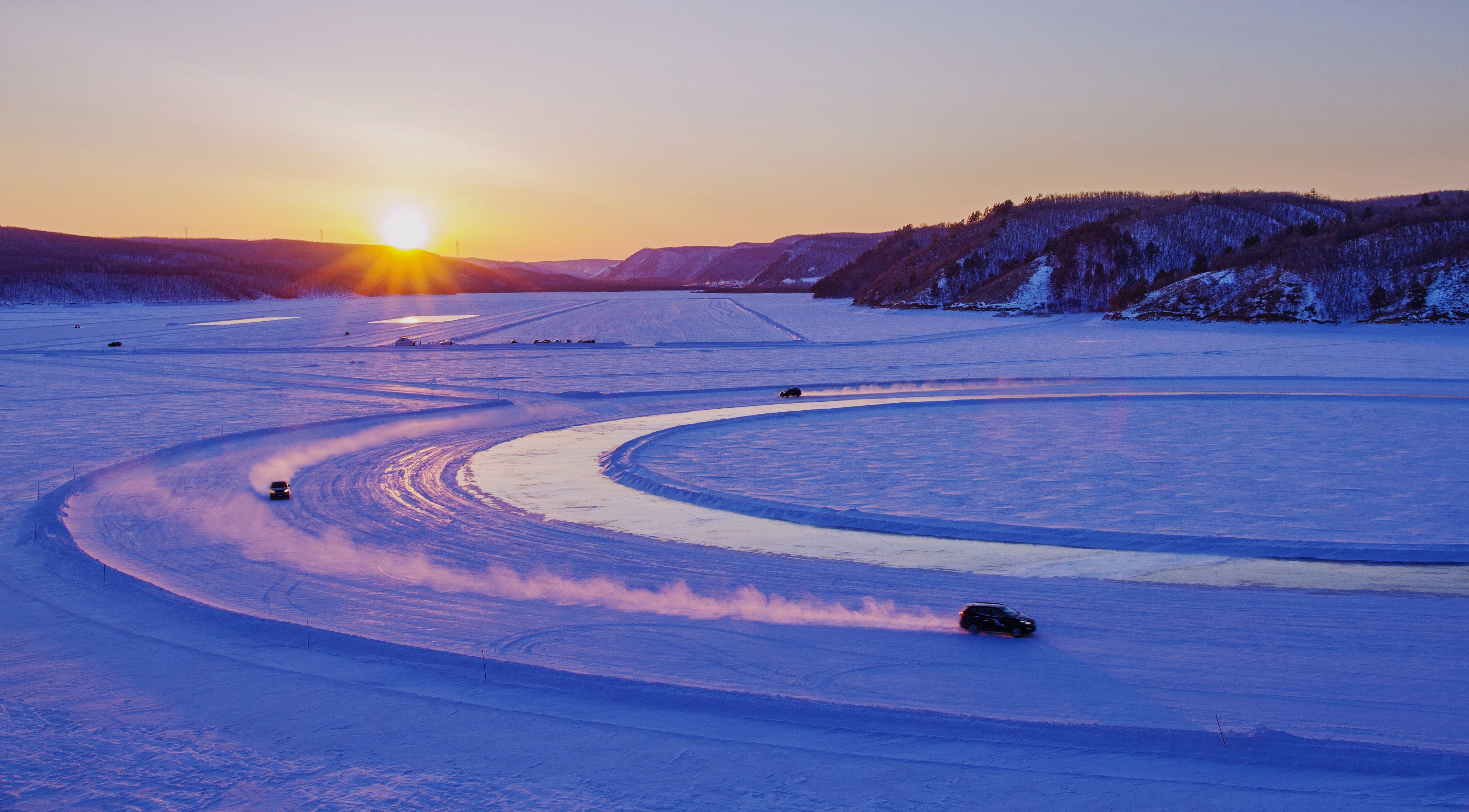 Cars being tested on a ice and snow-covered lake. (Source: Information Office of Heihe Municipal People's Government)