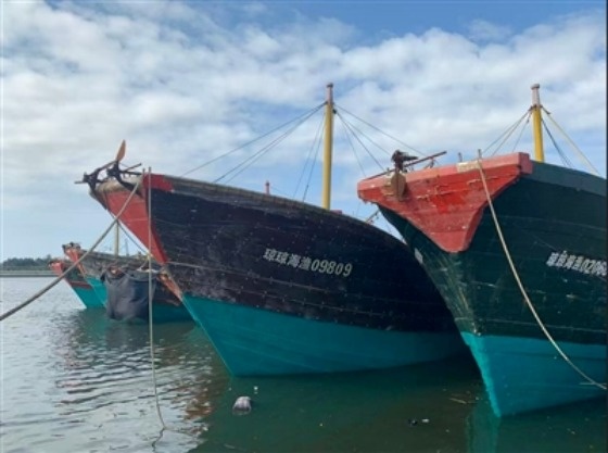 Fishing boats with red bows in Tanmen, Qionghai. Photo: Wang Yiyou