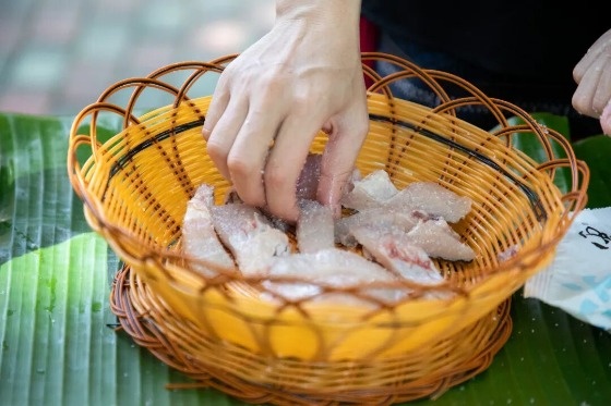 Despite its name, yucha (literally “fish tea”) is not tea but a traditional dish of the Li ethnic group. It's made by fermenting fresh fish with rice and starter cultures, giving it a distinctive flavor. Recently, its bold and intriguing taste has caught the attention of many adventurous diners eager to experience something different and exciting.