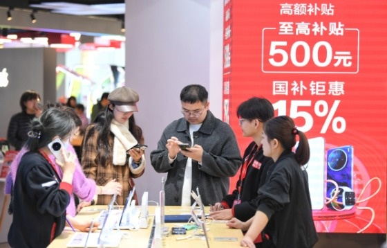 Shoppers browse digital products offering trade-in subsidies at a store in Hefei, Anhui province. CHEN SANHU/FOR CHINA DAILY