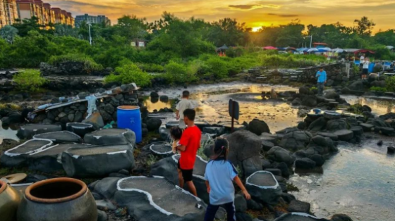 If you drive west from Haikou on the Hainan Coastal Tourism Highway to Danzhou’s Yangpu Peninsula, one of the most interesting sights is the volcano-rock salt pans scattered across the tidal mudflats of Yantian. These ancient saltfields have been in continuous operation for over 1,200 years and are also one of the earliest and best-preserved of China’s extant sun-dried salt-making sites.