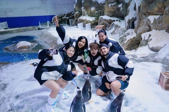 The Polar Pavilion is home to adorable penguins, cute sea lions, and agile polar bears. "I actually got to feed penguins in Hainan!" Josh Reid, a young man from Australia, donned a down jacket and entered the -3°C ‘polar environment’ to feed fish to the penguins. "This is so interesting! I think this place is perfect for everyone. Everyone can be healed by the animals and captivated by their beauty."