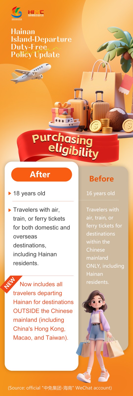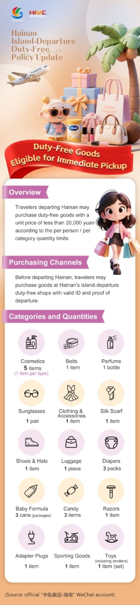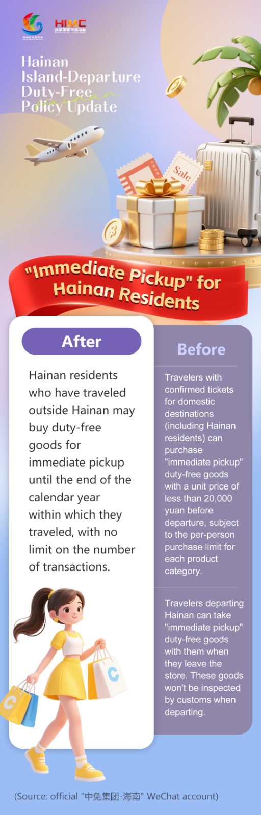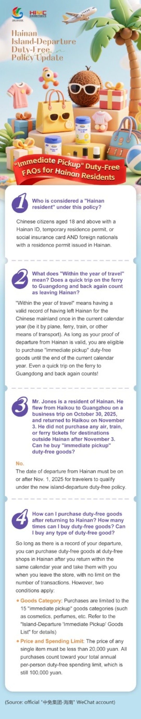 Starting Nov. 1, Hainan's island-departure duty-free shopping policy will cover more travelers, include more categories, and allow Hainan residents (including expats) who have traveled outside Hainan to buy duty-free goods for immediate pickup for up to one year after their trip.