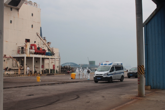 Since pre-inspection had already been carried out through an online application system, after the Liberian ship arrived at Yangpu, entry and customs clearance procedures for the ship were completed within 15 minutes. This system has greatly shortened the time required for these procedures, and radically improved the port’s customs clearance efficiency. Twenty Chinese crew members were then cleared to either disembark or board the ship safely.