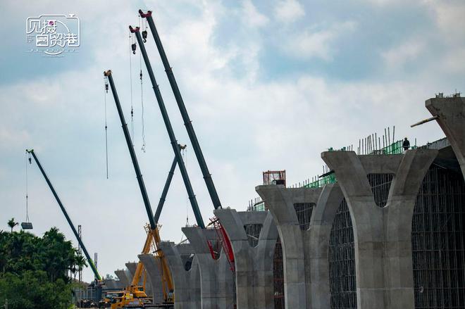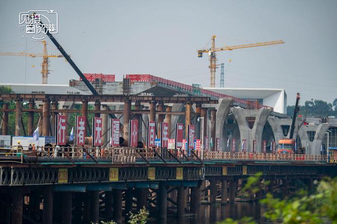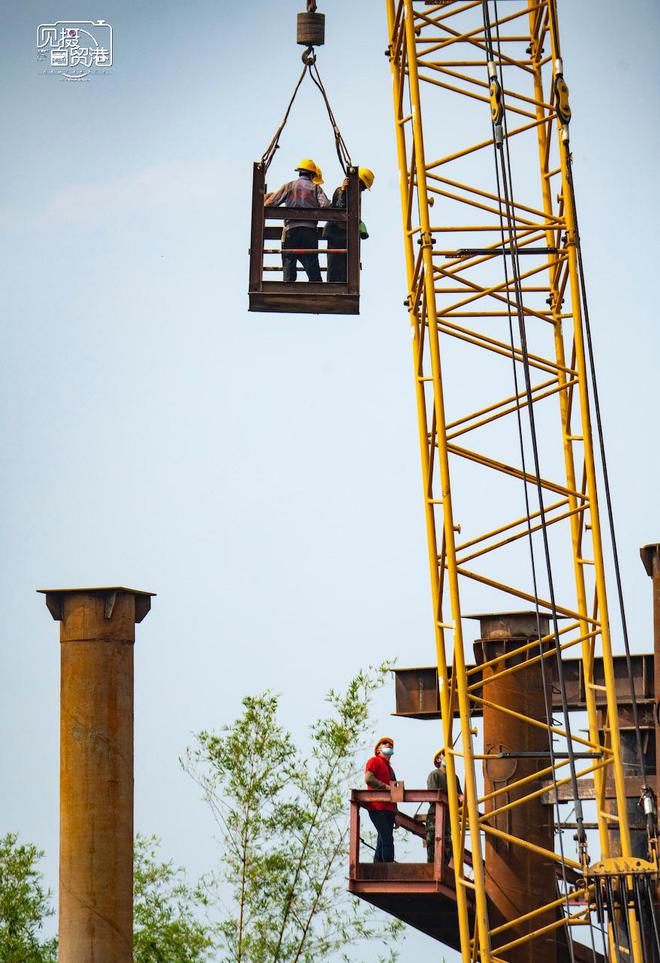 At present, all the piers and pile foundations of the bridge have been completed, a total of six half-width box girders have been laid on the approach bridges at both ends, and the construction of the main tower is accelerating.