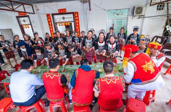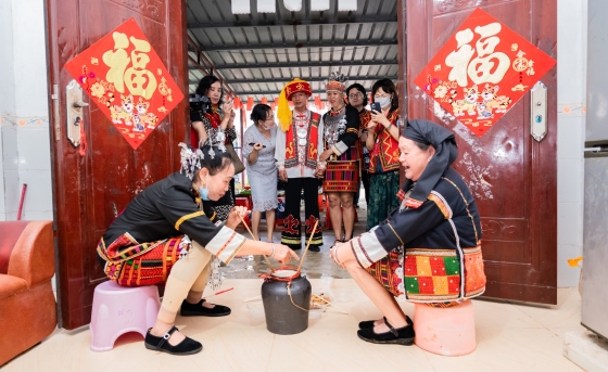 Maintaining their people’s long historical practice, the rural areas of Qiongzhong, Wuzhishan, and other places with large numbers of Li people, frequently still hold this type of traditional ethnic wedding. Even to an inexperienced outsider, the celebration is a carrier for important information about the Li people's history, culture, and social life. At the scene, attendees participated in and experienced several traditional marriage practices. Customs such as the payment of the bride price by the groom’s family, her birth family sending her off to her new family, her reception and welcome by his family, her first entrance into her new home, and the wedding banquet display the colorful habits of the Li.