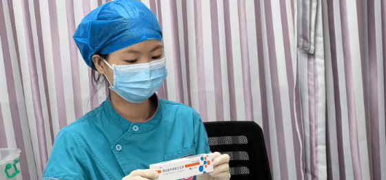A nurse at the vaccination clinic of Hainan Provincial Women and Children's Medical Center. (Photo: Wang Hongxu)